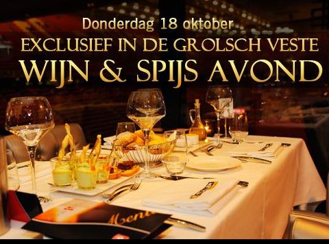 Donderdag 18 oktober wordt er een exclusieve Wijn & Spijs Avond in De Grolsch Veste gehouden. Sfeervol dineren op een...