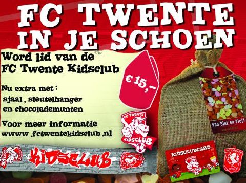 Sinterklaas maakt je lid van de FC Twente Kidsclub! Nu met een sjaal, FC Twente sleutelhanger en zakje chocolademunten. Coupon...