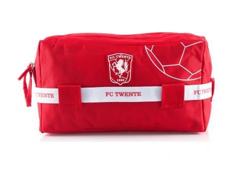 Sportieve toilettas in FC Twente rood en applicatie van het clublogo. Origineel detail is de witte 'ceintuur'. Praktisch dankzij twee...