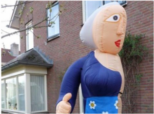 Het opblaasfiguur is op gewenste datum na telefonische afspraak op locatie in Hengelo af te halen.