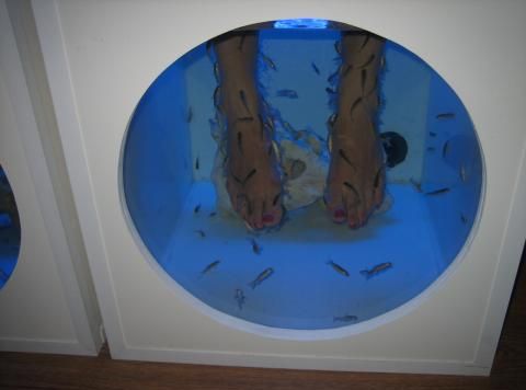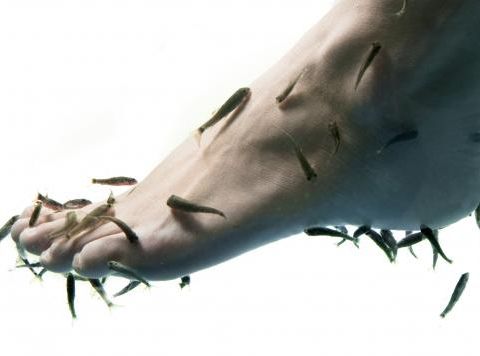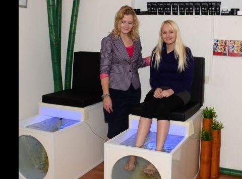 Voetverzorging van 30 minuten door Garra Rufa-knabbelvisjes.